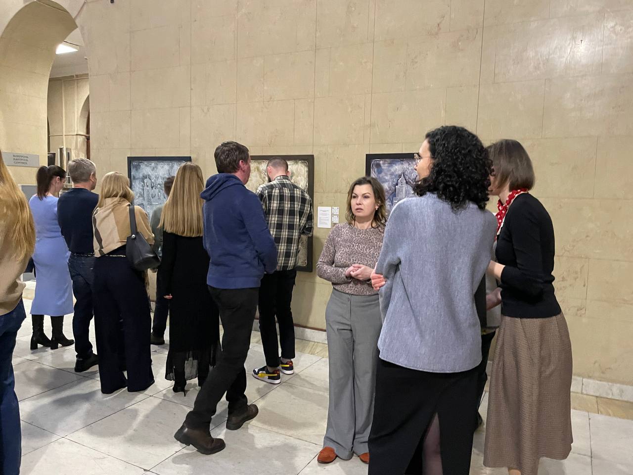 Гости ознакомились с работами арт-проекта. Одни ценители искусства долго рассматривали картины, фотографировали их, другие — робко прикасались к рельефным контурам.
